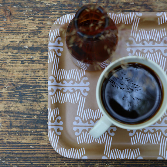 Vårt sortiment är uppbyggt så att många mönster och färger passar utmärkt att kombinera. Mixa och matcha grafiskt stilrent med organiska blommönster, eller varför inte gå hela vägen med ett färgtema. Såhär vintertid väljer vi gärna värmande rostiga och bruna toner. I sortimentet finns kökshanddukar, kuddfodral och brickor på det färgtemat. Vilka färger och mönster väljer du att kombinera?