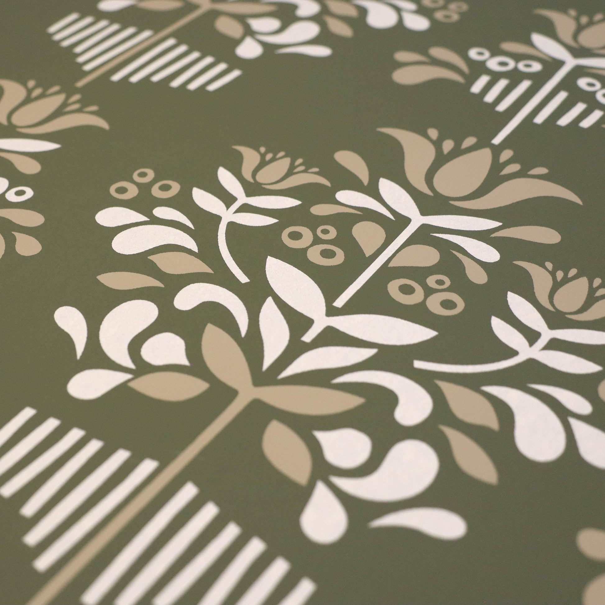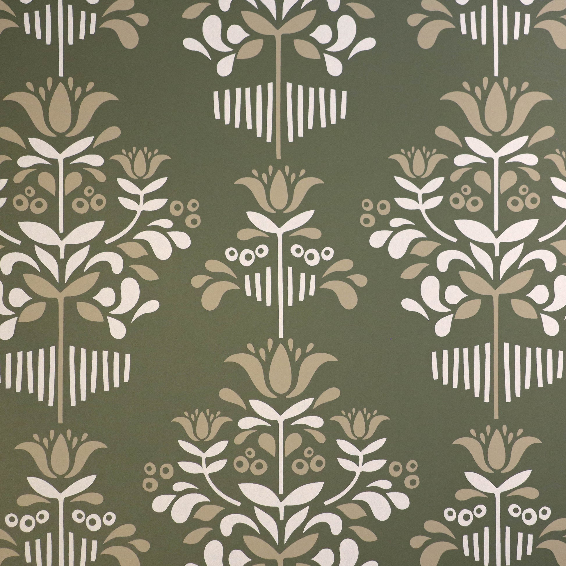 Beställ gärna ett tapetprov för att få en bättre uppfattning av tapetens mönsterstorlek, färg och textur. Tapeten är screentryckt med traditionella metoder vid Ulricehamns Tapetfabrik i Sverige.