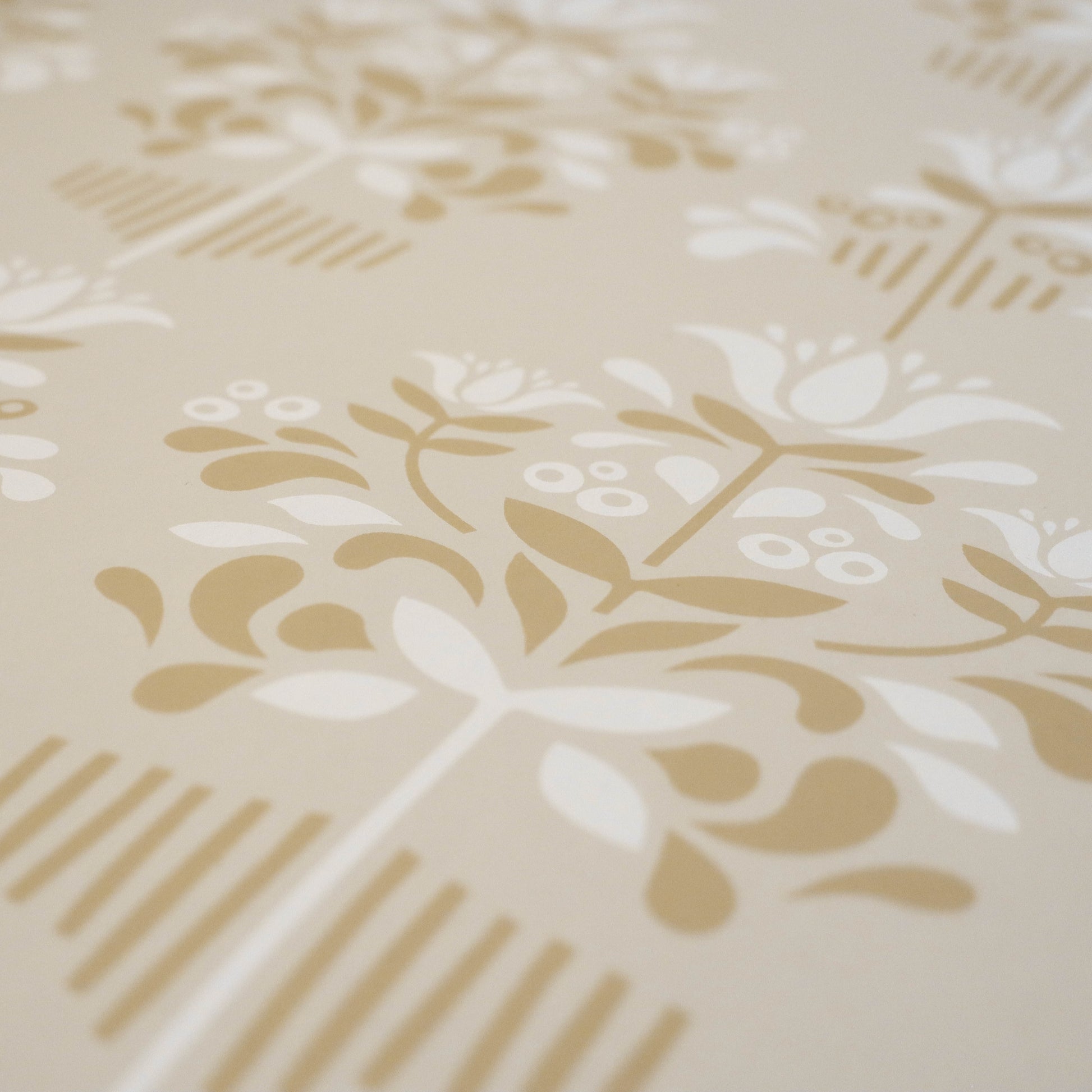 Beställ gärna ett tapetprov för att få en bättre uppfattning av tapetens mönsterstorlek, färg och textur. Tapeten är screentryckt med traditionella metoder vid Ulricehamns Tapetfabrik i Sverige.